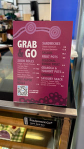Design of menus & signage for tournament food spaces, using artwork commissioned by Tennis Australia from First Nations artist Thomas Croft.